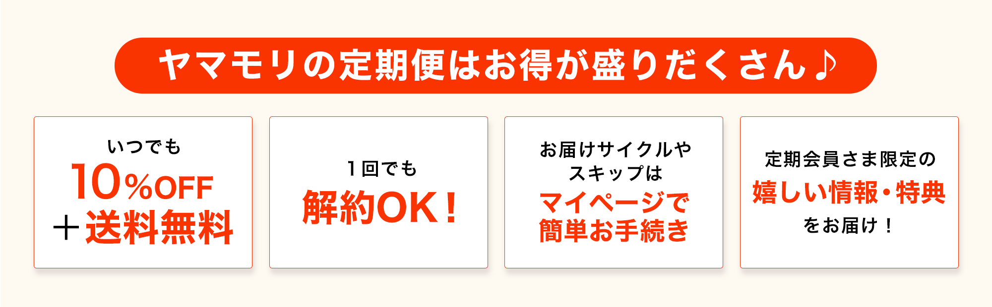 回数の縛りはございませんので、レギュラー定期便への切り替えもいつでもご利用いただけます。 ご利用の際は、マイページでライト定期便を停止いただき、レギュラー定期便をご購入ください。