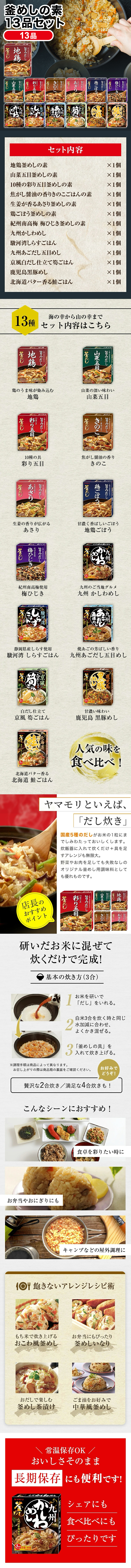 ヤマモリの釜めしの素13品をセットにしました。