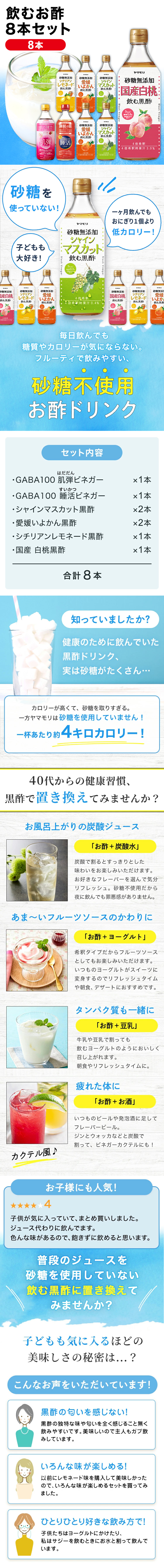 ヤマモリ 砂糖無添加飲むお酢シリーズ6種8本をご家庭で飲み比べてお楽しみいただけるセットです