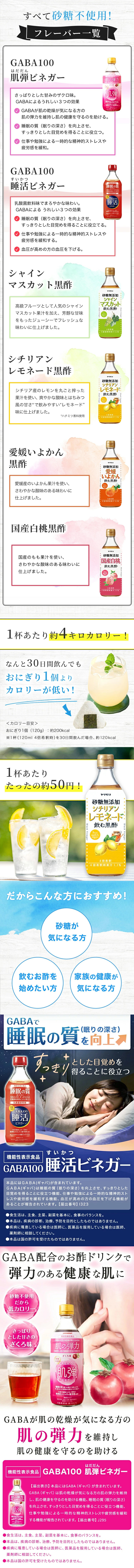 原材料名:りんご酢(国内製造)、GABA含有発酵液/酸味料、甘味料(スクラロース、アセスルファムカリウム、ステビア)、香料、カラメル色素、(一部に乳成分、りんごを含む)